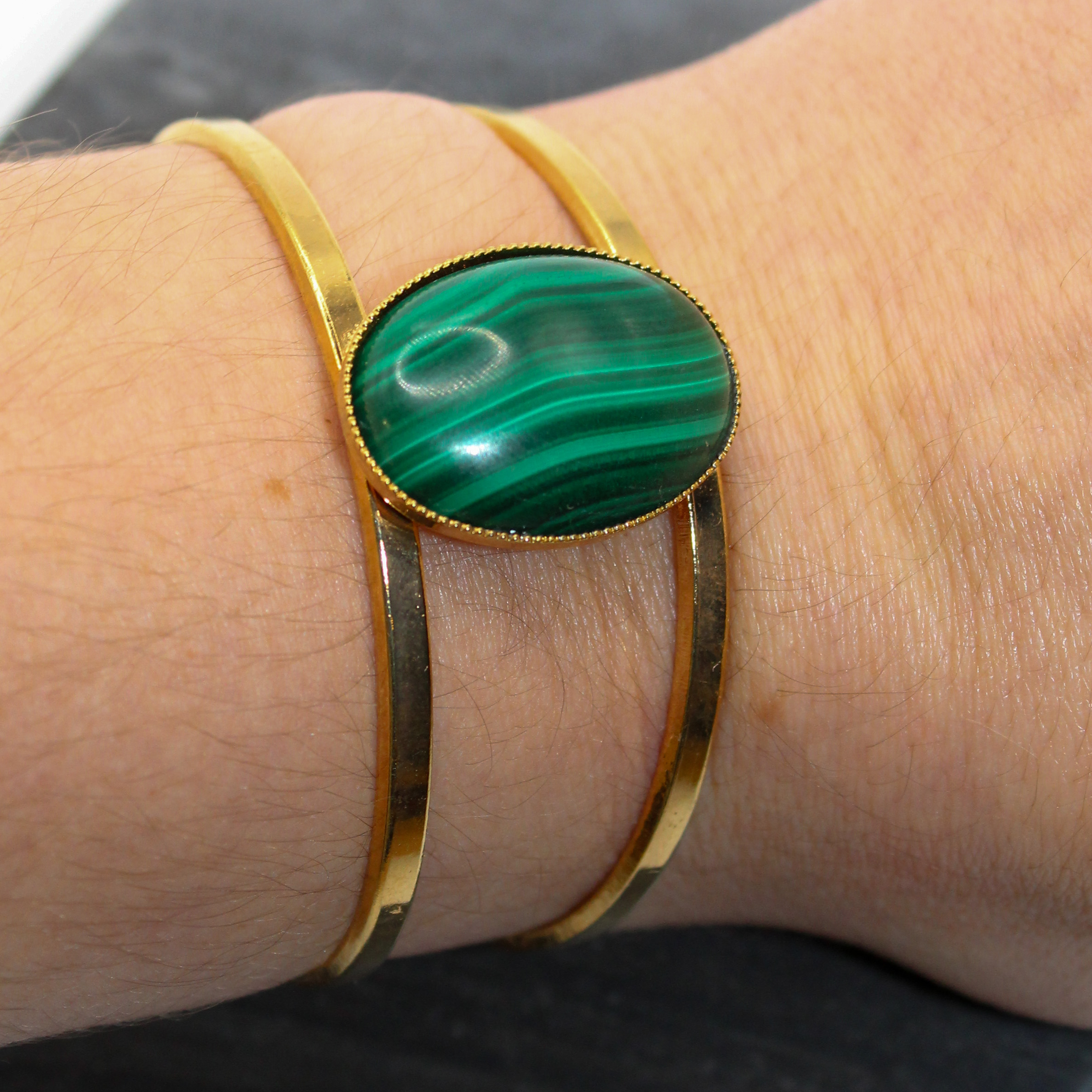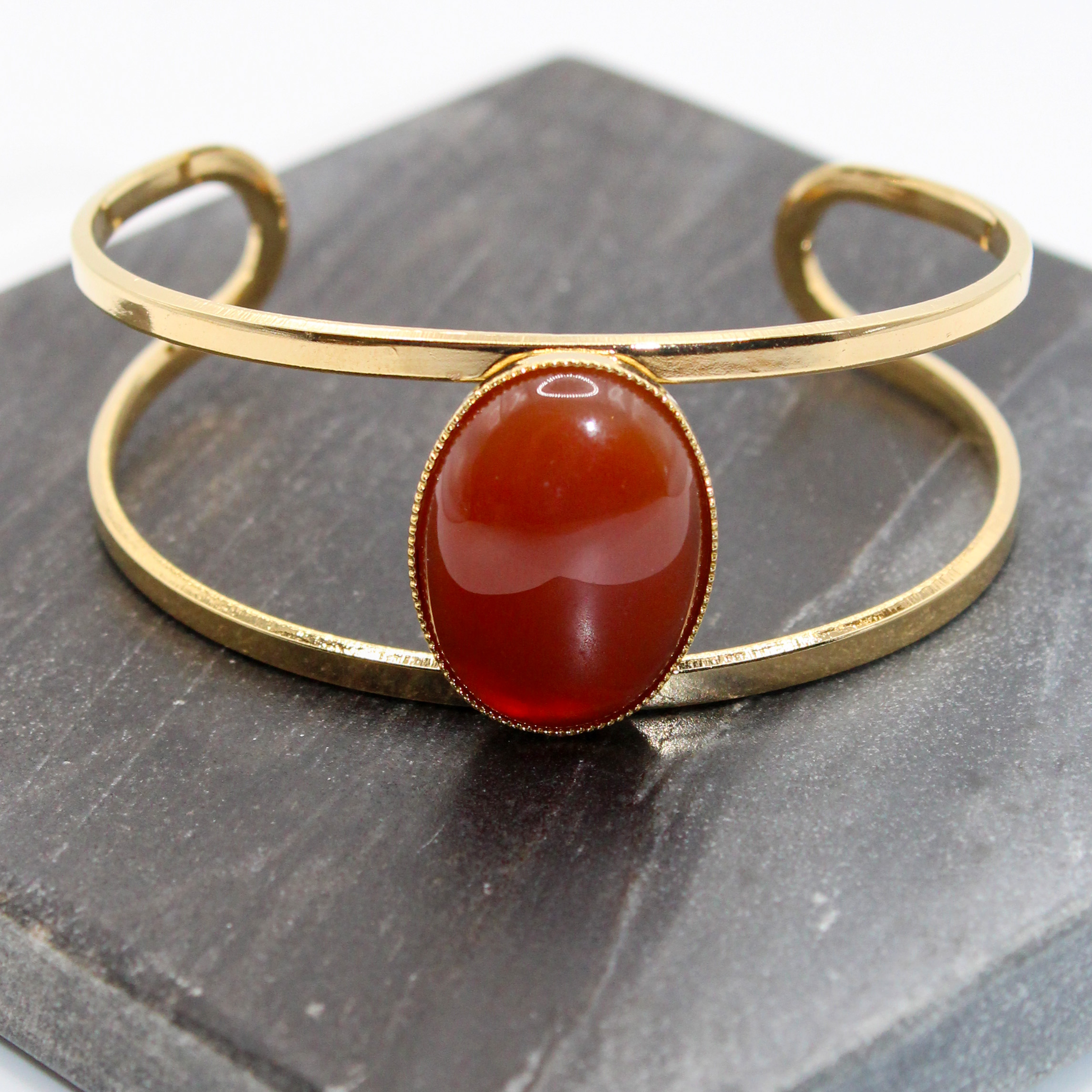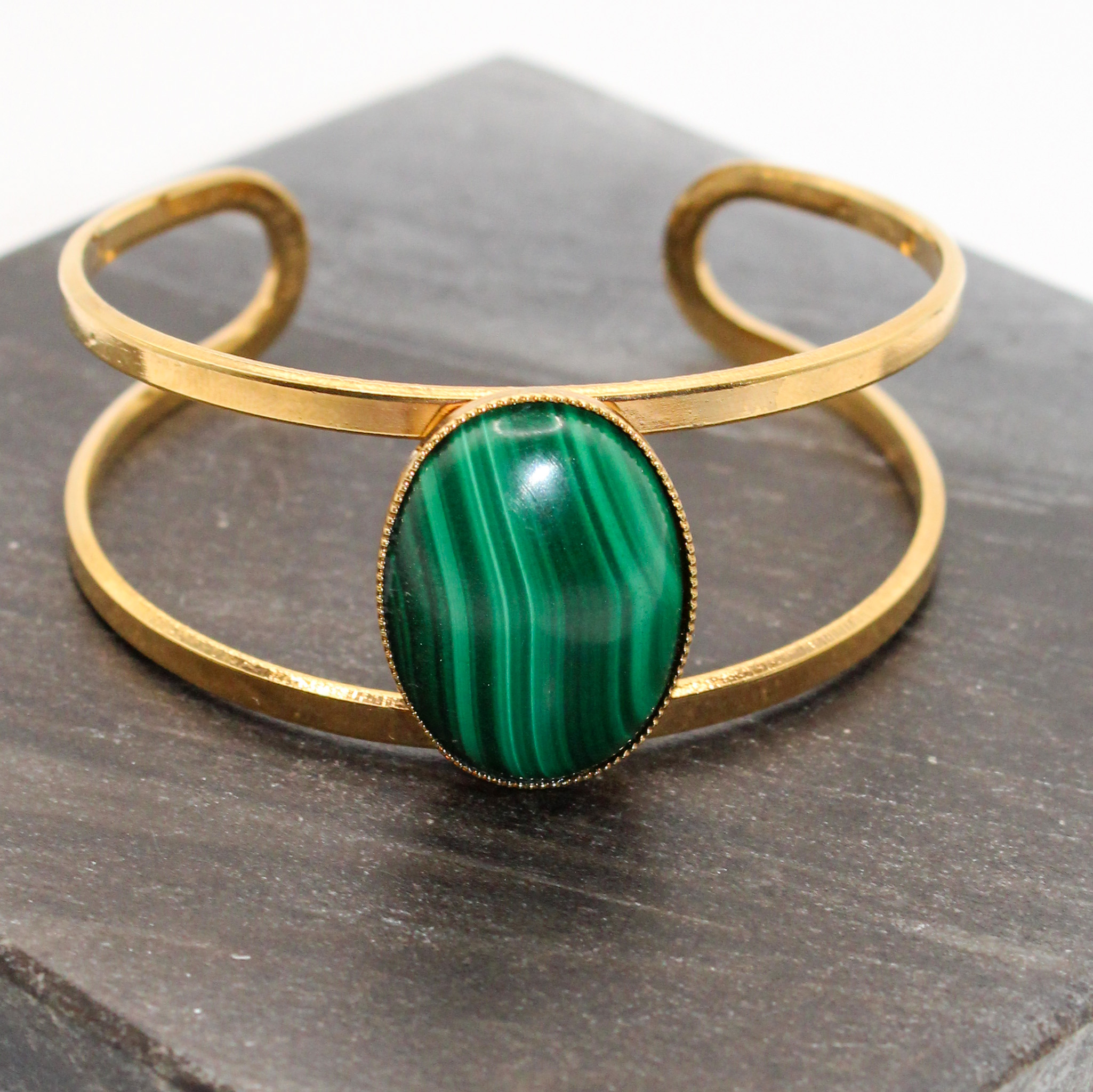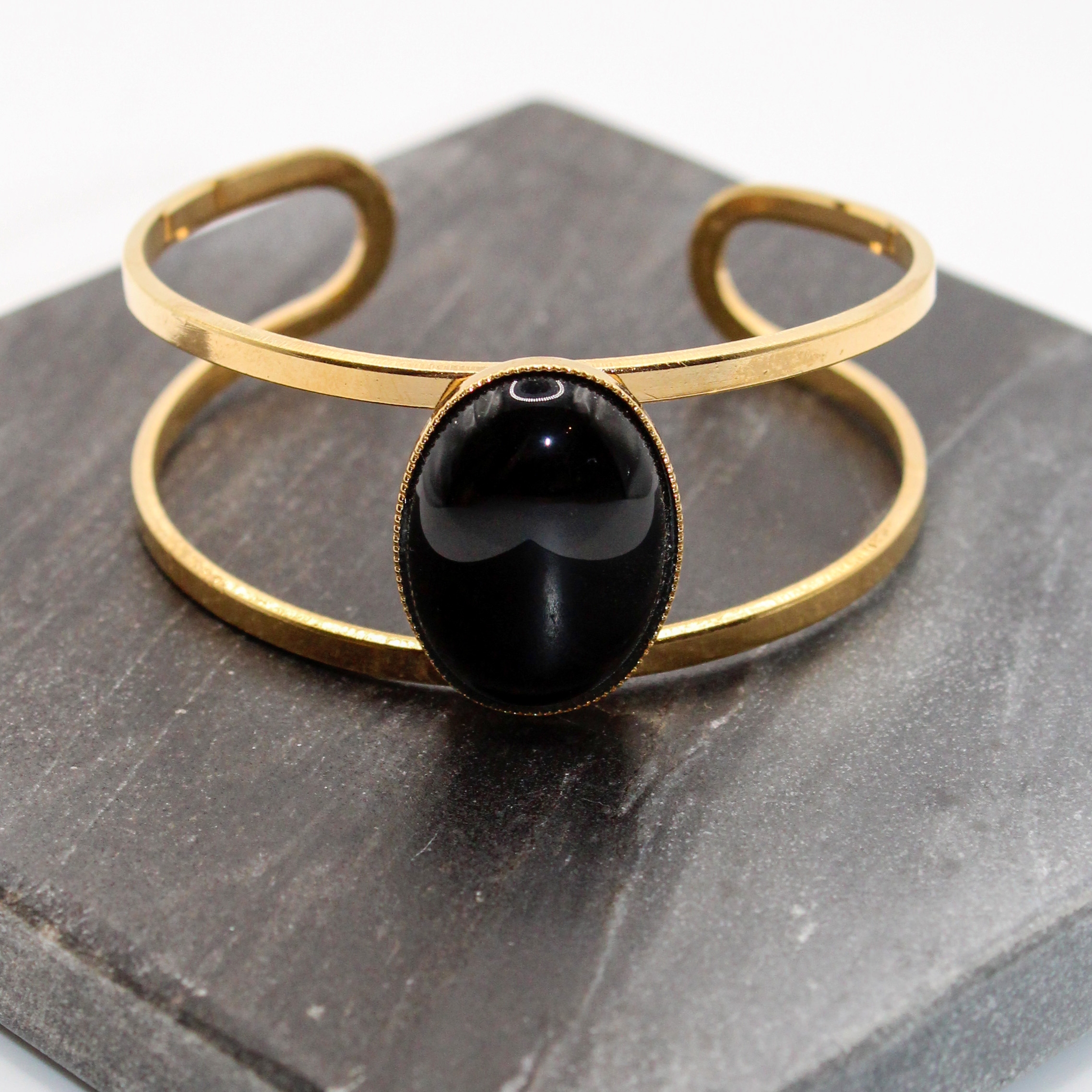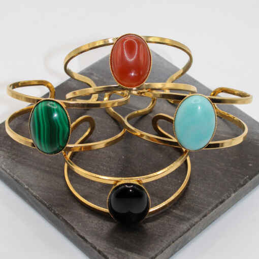 Manchette double jonc surmontée d’une pierre fine cabochon XL, du chien au poignet !