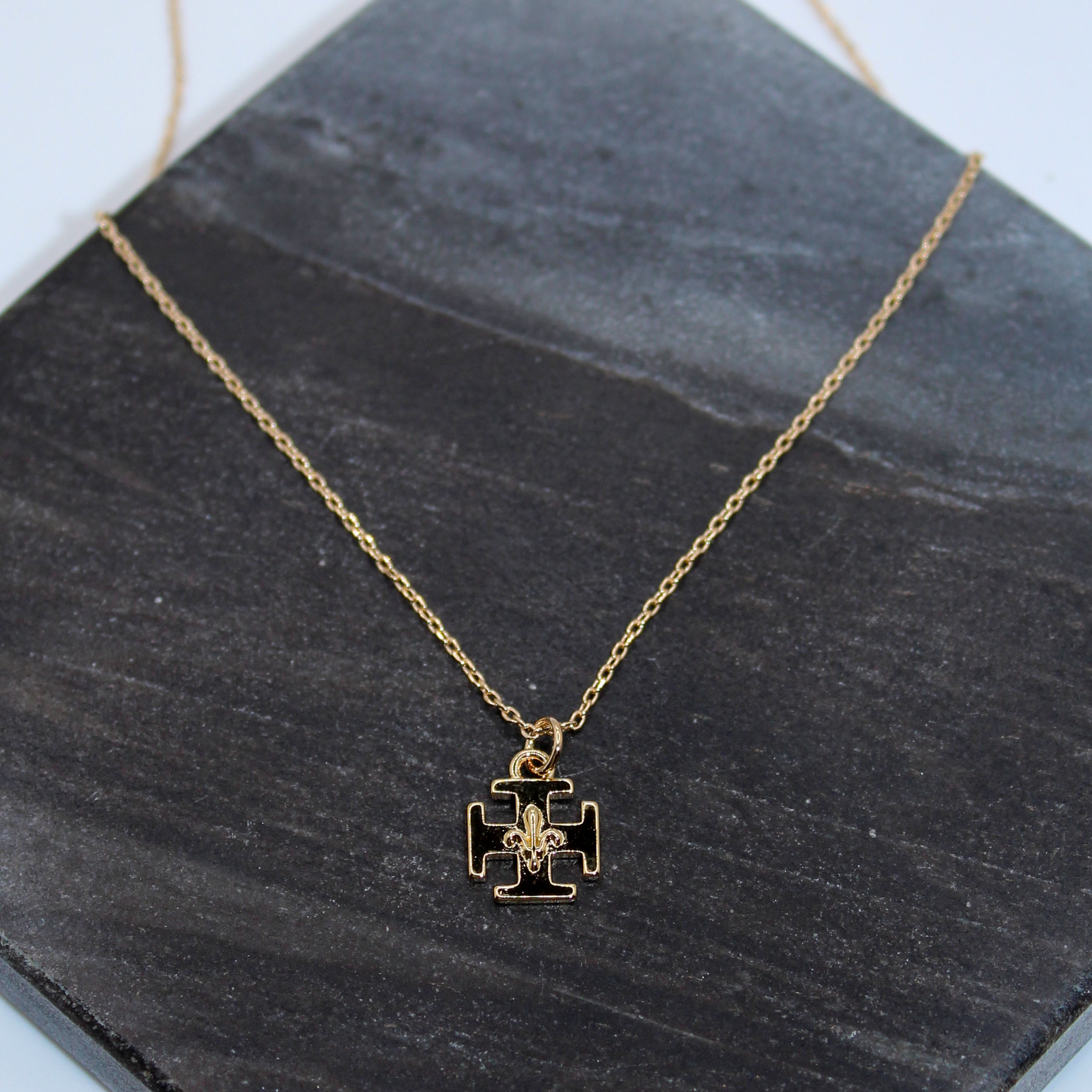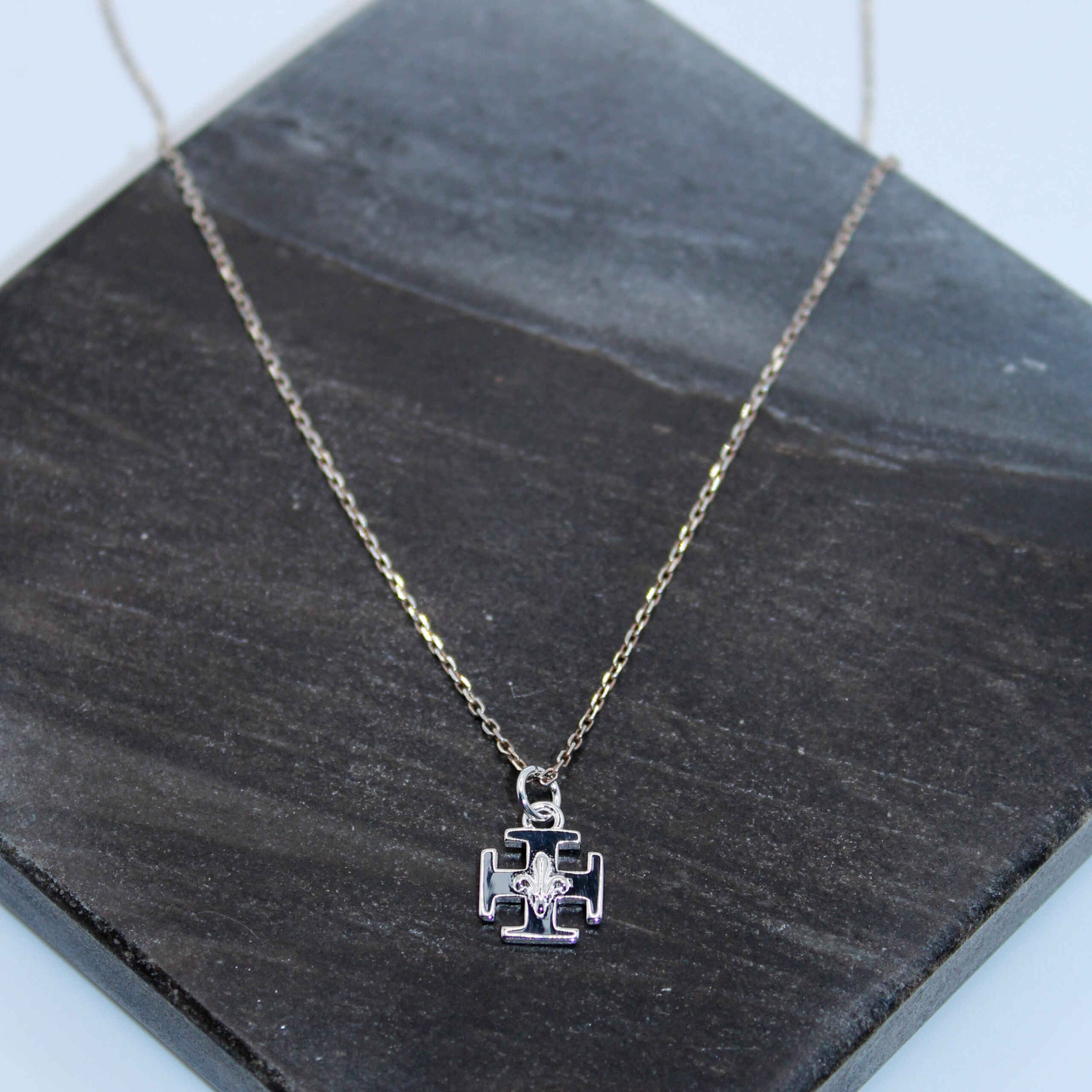 Collier croix scoute en plaquée or 3 microns ou argent massif monté sur une chaîne maille forçat 40 cm