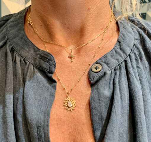 Ravissant pendentif ciselé qui pourrait être celui de notre grand-mère tant il est fin et raffiné, zirconium central en forme de goutte, une vraie beauté.