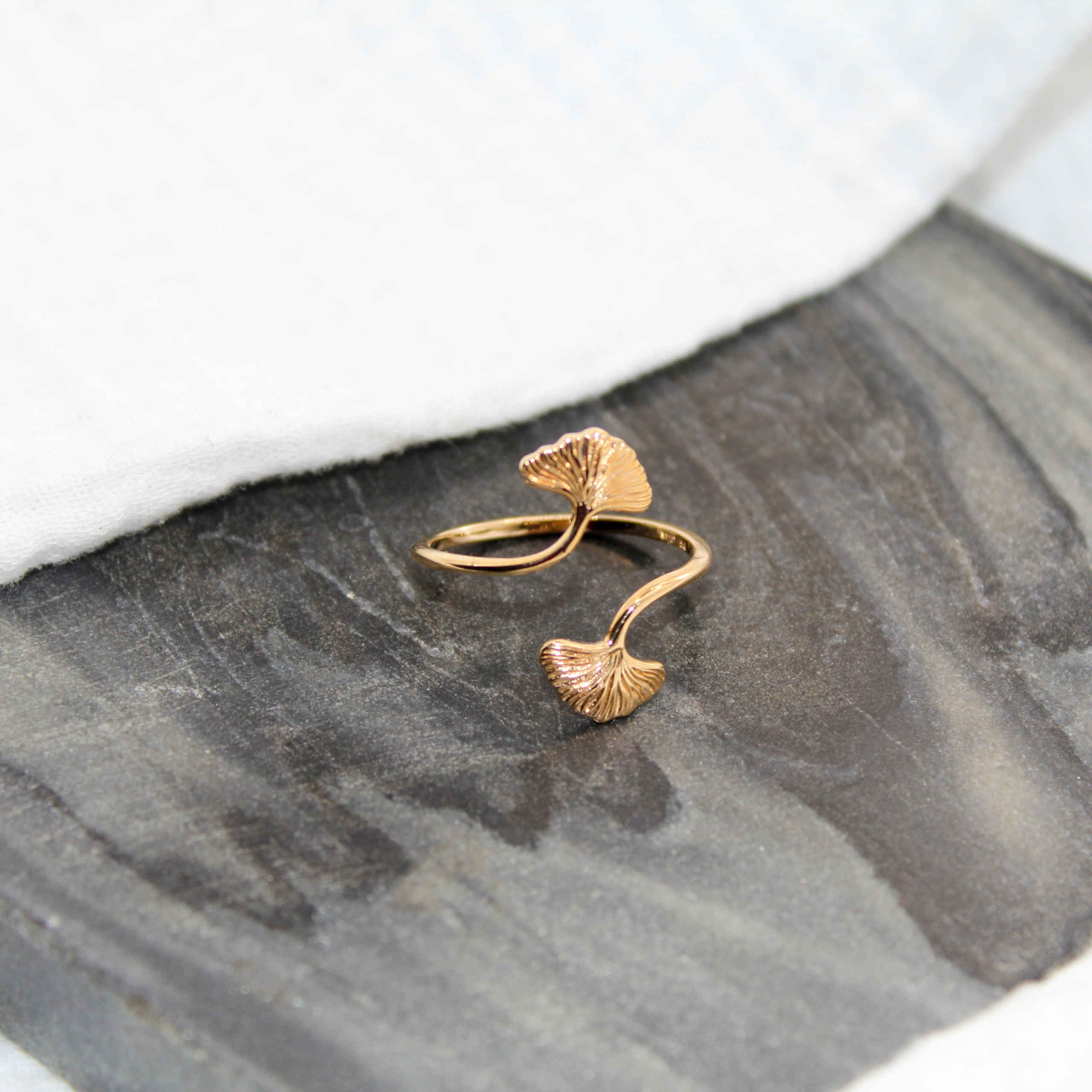 Bague Amalia en plaqué or 3 microns en forme de fleur de gingko.