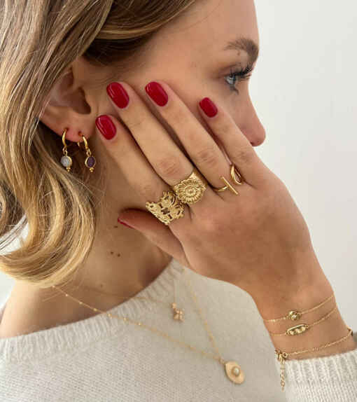 Bague en plaqué or, large de 1,5 cm, travaillée et accompagnée d’une ravissante fleur pour un effet garanti !