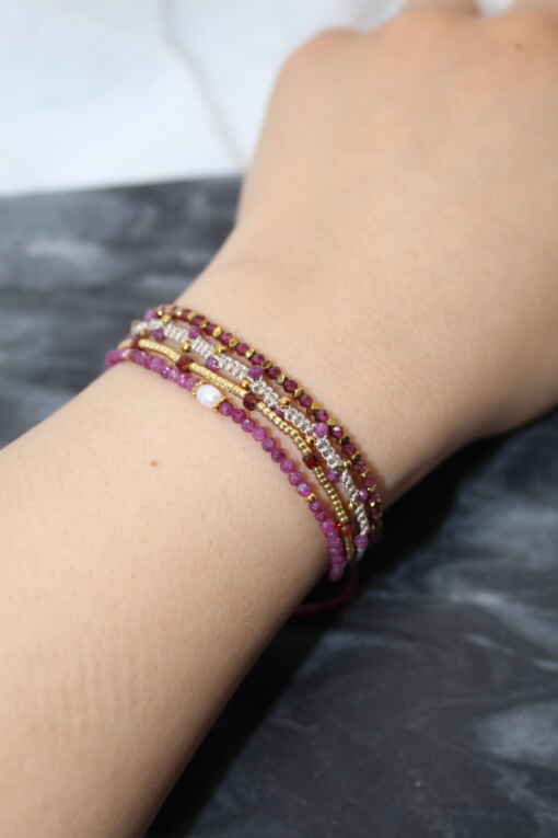 Ce joli bracelet contient une combinaison d’améthyste et de perles fines