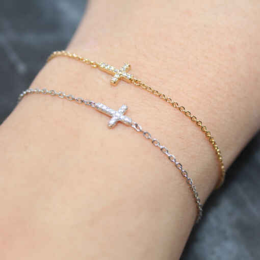 Bracelet croix sertie, disponible dans deux couleurs : doré ou argenté.