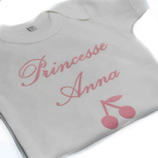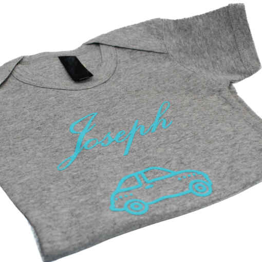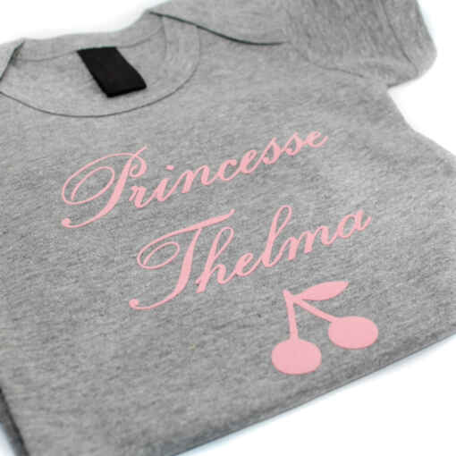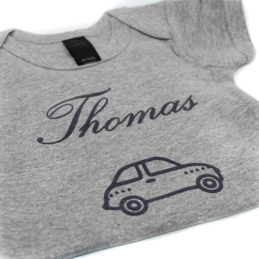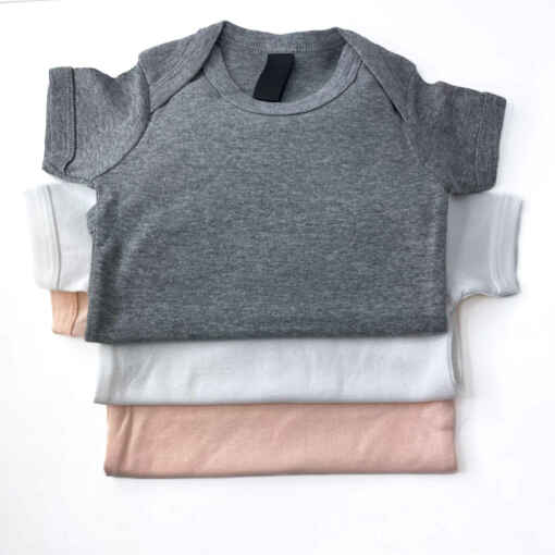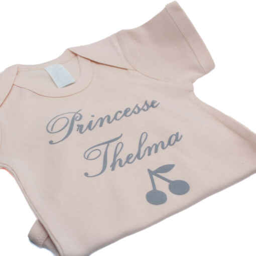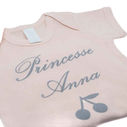 Body 100% coton disponible en gris, blanc ou rose poudré, avec l’impression de votre choix.