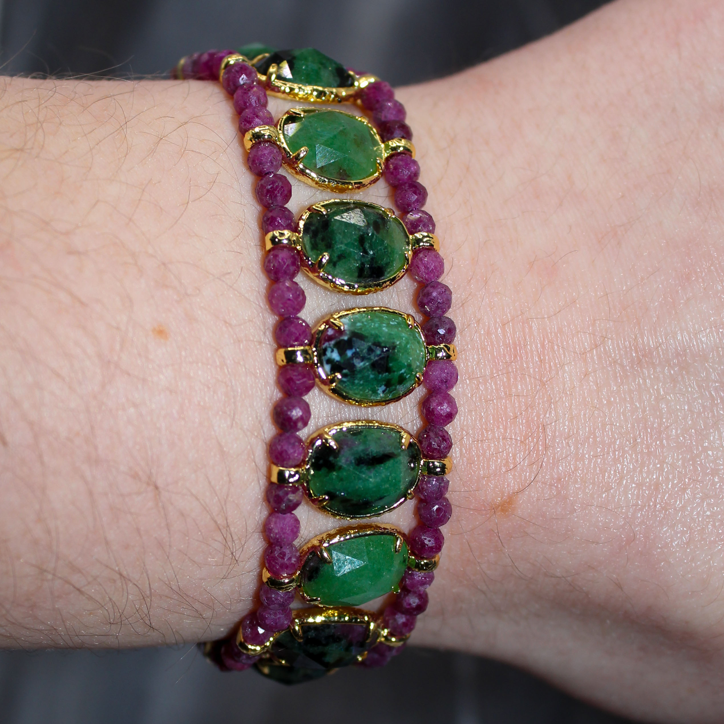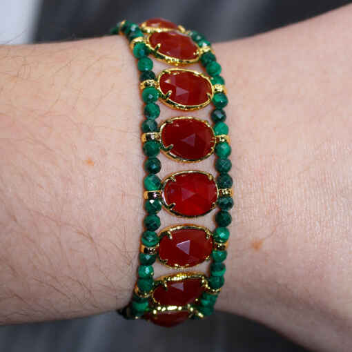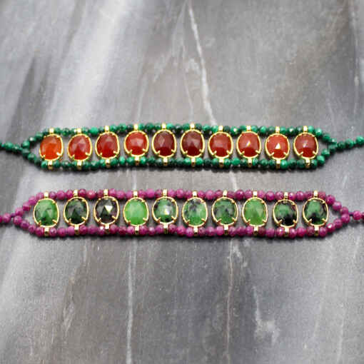 Bracelet Julien composé de pierres fines ovales et tissées entre des perles.