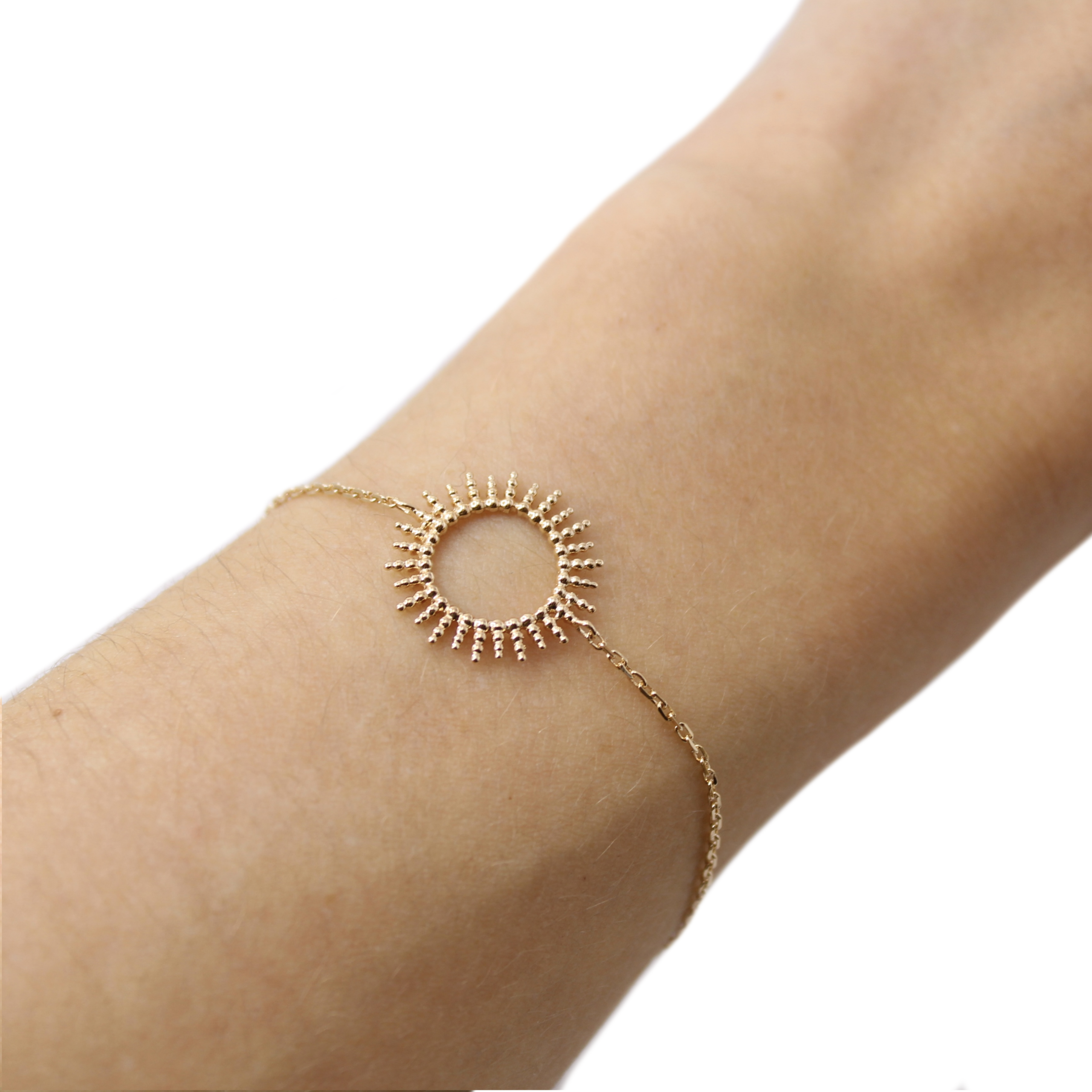 Bracelet Louison en plaqué or 3 microns ou argent massif, en forme de soleil délicatement ciselé.