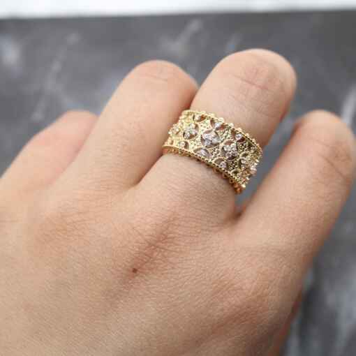 Ravissante Bague en dentelle finement ciselée en plaqué or 3 microns avec des zirconiums .