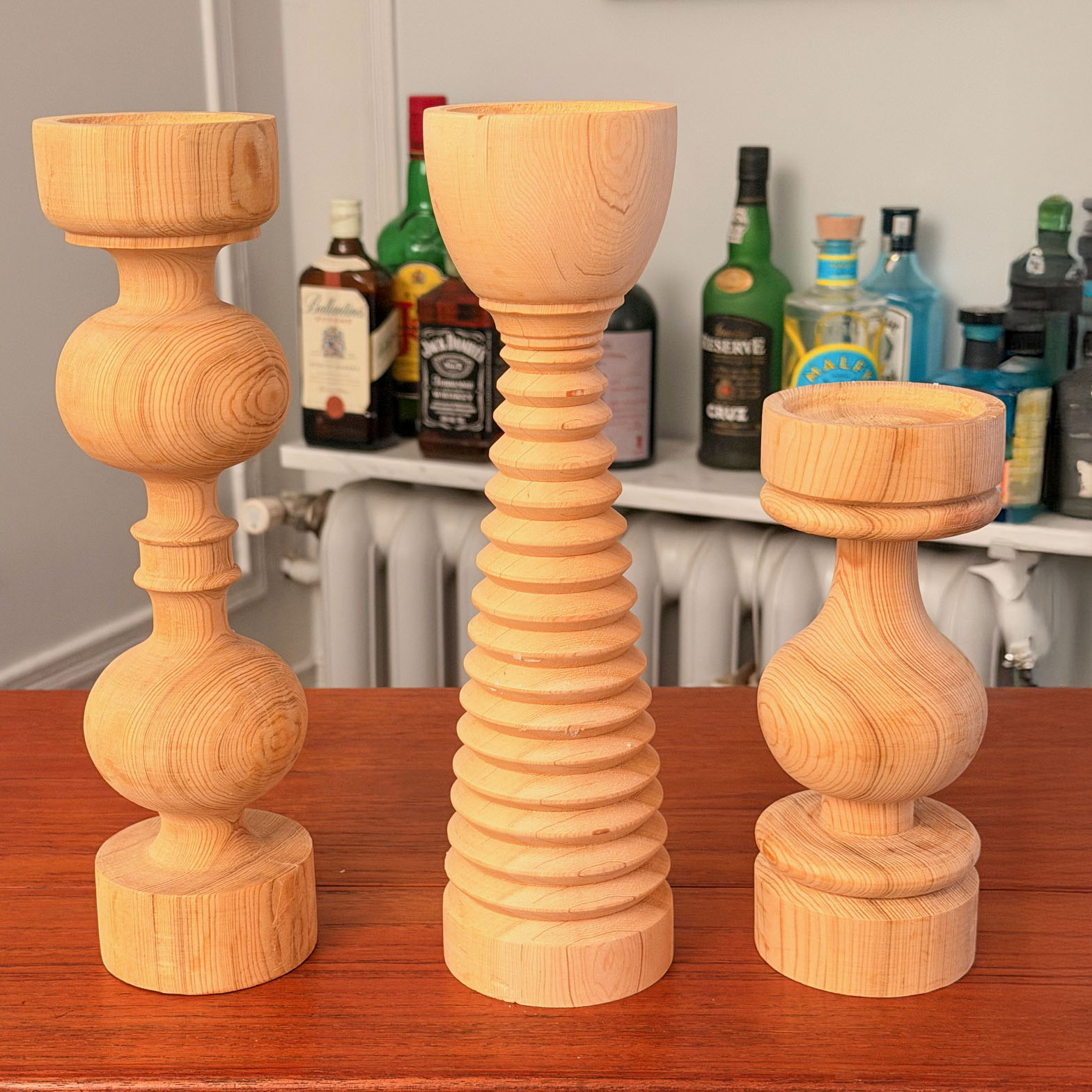 Bougeoirs en bois de Cèdre travaillés à la main, ce lot de 3 sera parfait pour habiller votre intérieur.