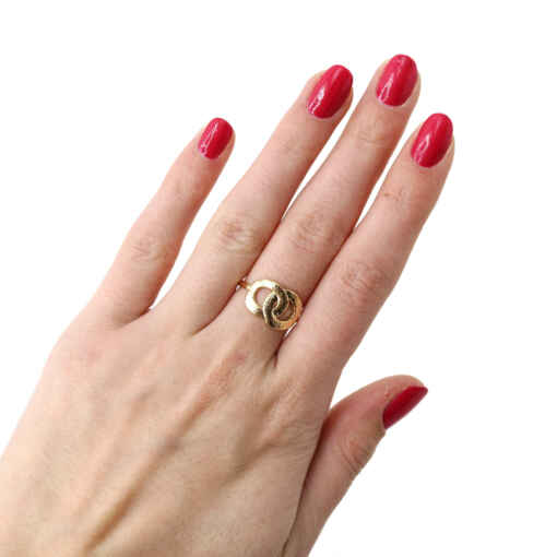 La bague Emilia, avec ses deux anneaux plats irréguliers en plaqué or 3 microns intiment croisés pour un look discret et élégant.