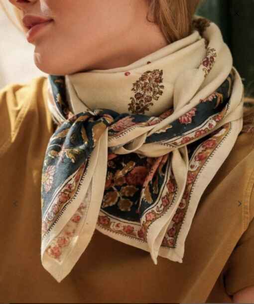 Foulard en coton tout doux imprimé Block-print, très souple.