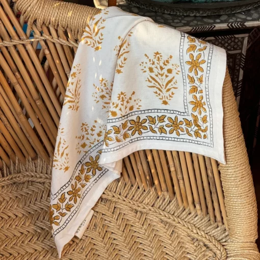 -Foulard Galatie écru en coton tout doux imprimé Block-print, très souple.