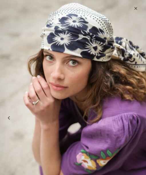 Foulard hindi bandana ecru/vanille carré de 100 cm.