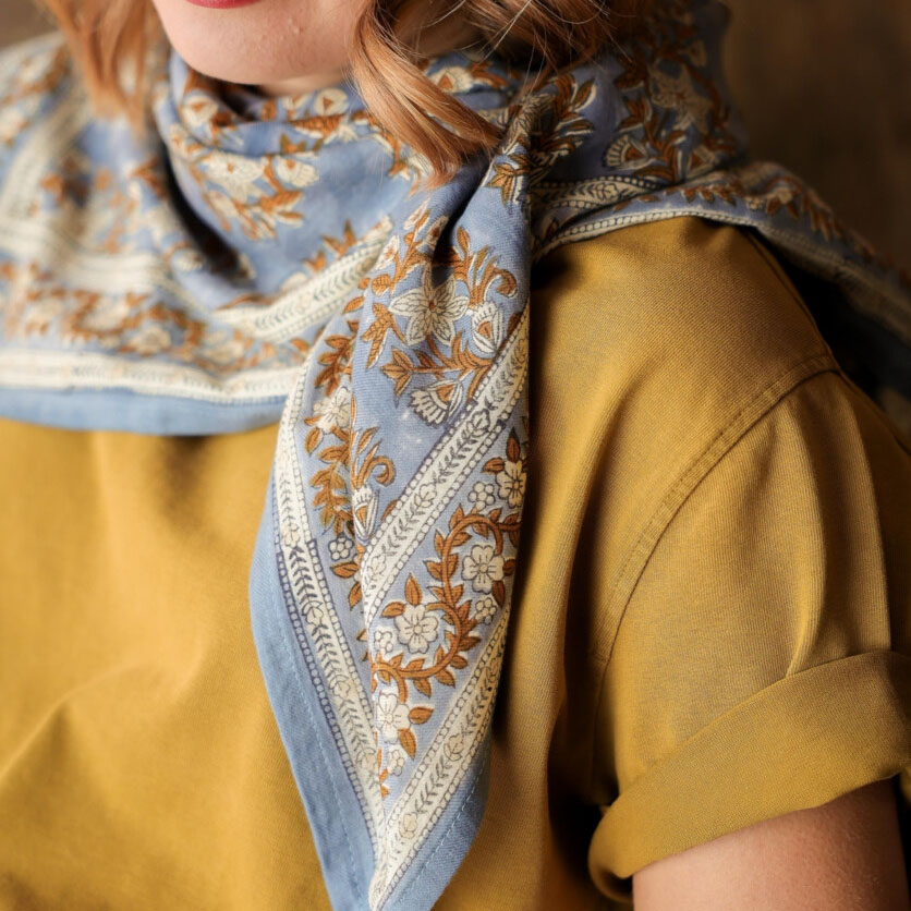 Foulard en coton tout doux imprimé Block-print, très souple