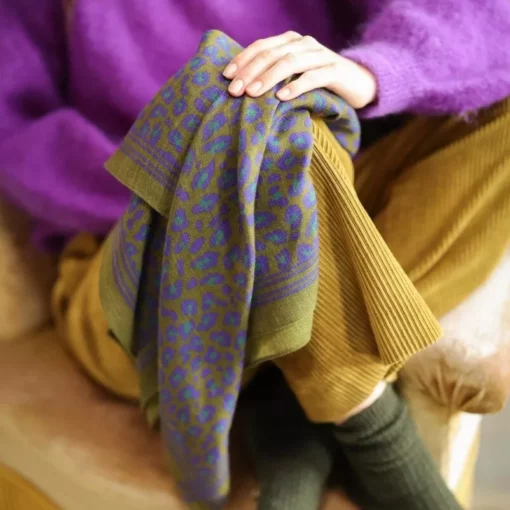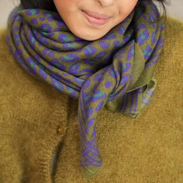 Foulard léopard bronze en laine imprimé à la main, très souple et doux.