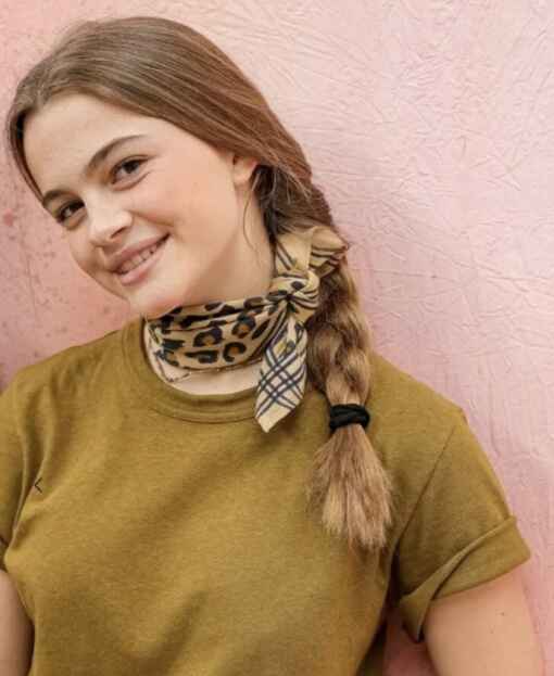 -Foulard léopard camel en coton tout doux imprimé Block-print, très souple.