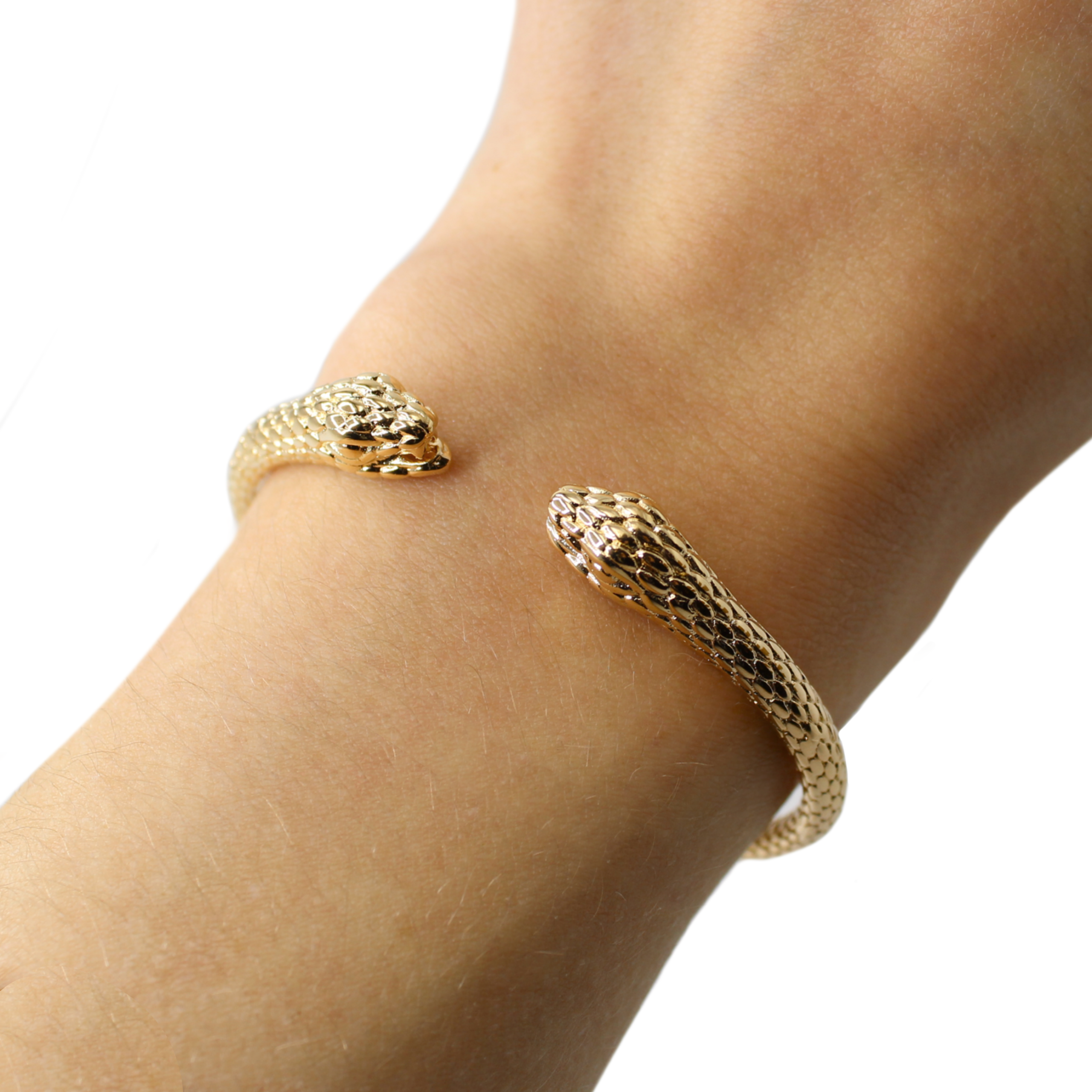 Jonc Léon à motif têtes serpents en plaqué or 3 microns, d’une rare finesse et délicatesse.