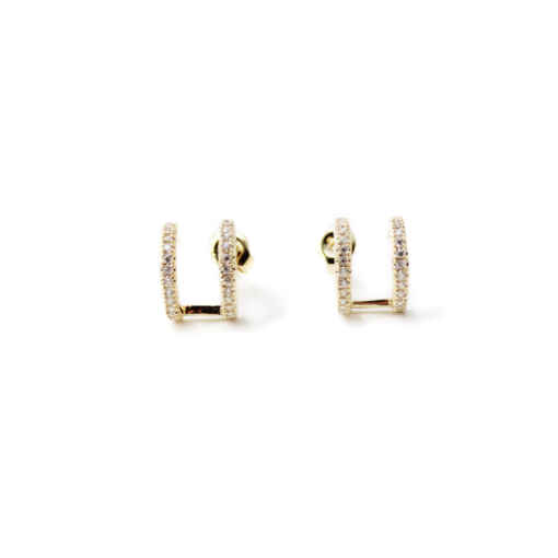 Boucle zircons blancs, effet deux trous, en plaqué or 3 microns.