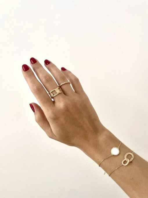 Bracelet pierre semi précieuse ou nacre serties et plaqué or.