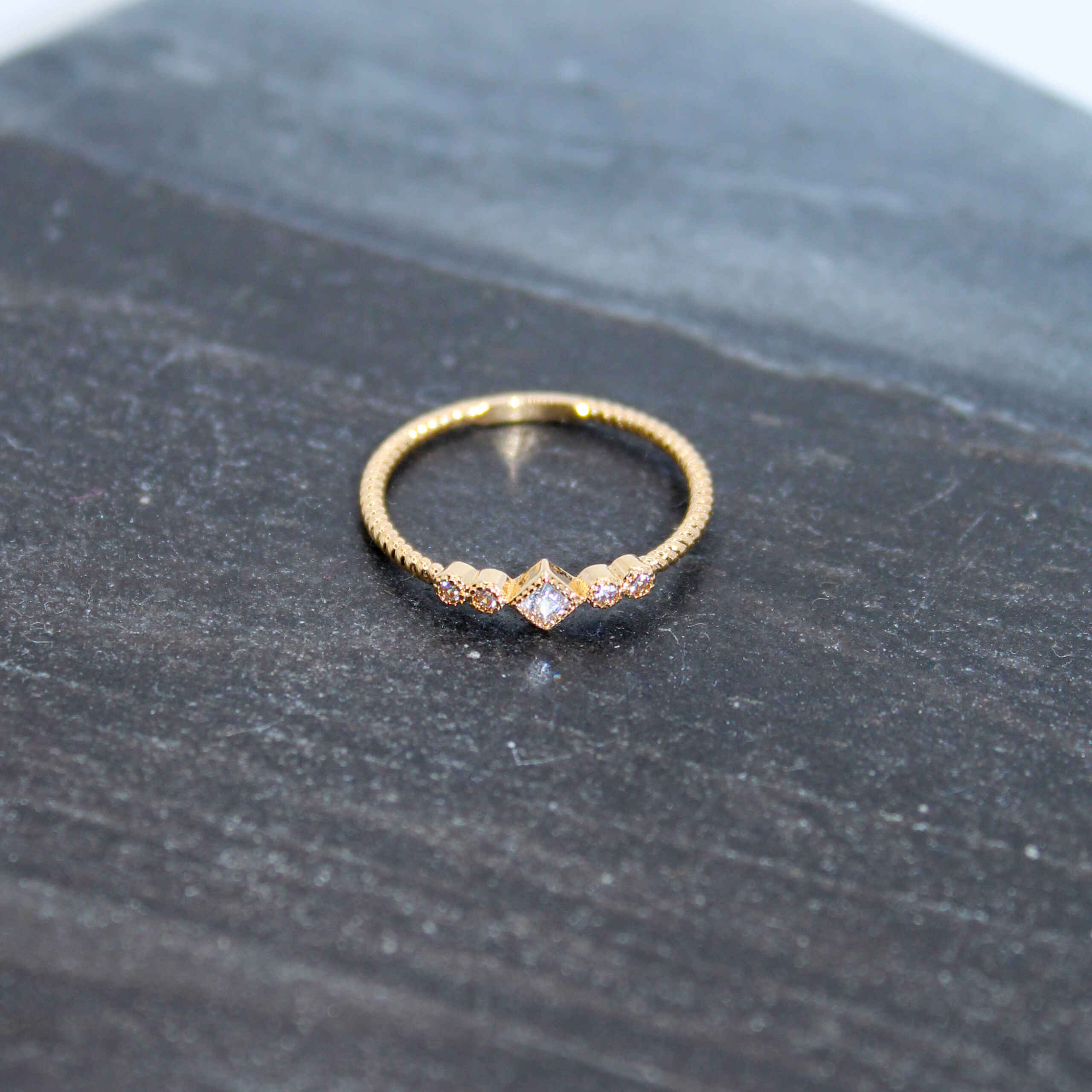 Bague très chic en plaqué or 3 microns et surmontée de zirconiums.