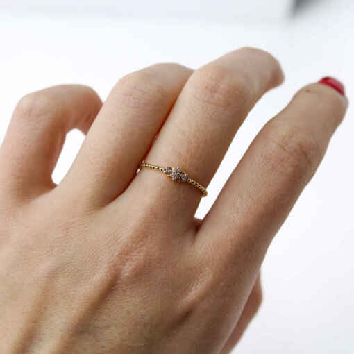 Bague très fine et chic en plaqué or 3 microns ornée de zirconiums.