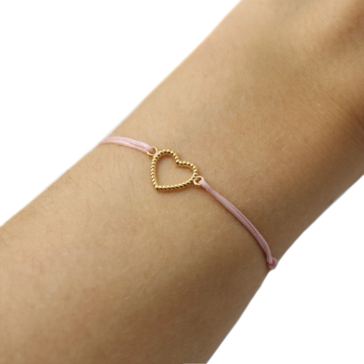 Joli petit coeur en plaqué or, monté sur un cordon fin du coloris de votre choix