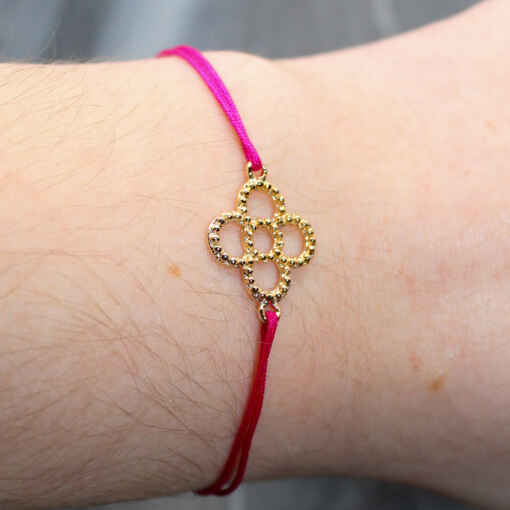 Joli petite fleur perlée en plaqué or, monté sur un cordon fin du coloris de votre choix