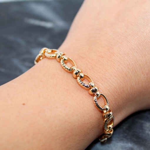 Ravissante gourmette en plaqué or composée d’anneaux ovales torsadés et de plus petits anneaux