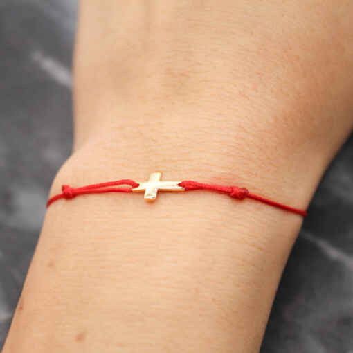 Mini croix montée sur un cordon fin du coloris de votre choix