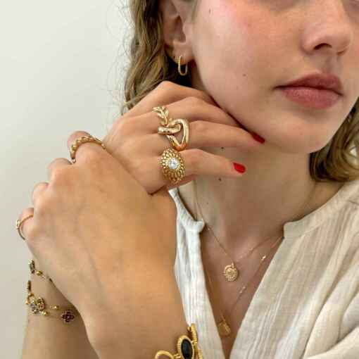 Petites créoles ravissantes forme rectangulaires en plaqué or motif boules