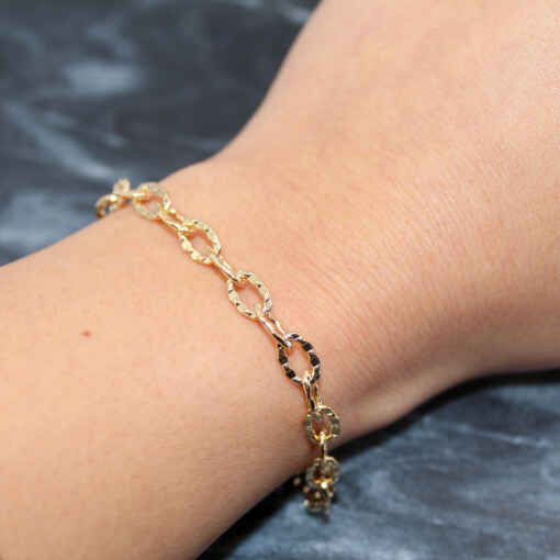 Ravissante gourmette en plaqué or composée d’anneaux ovales travaillés, très légère