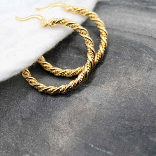 Créoles Moïra, plaquées or travaillées et torsadées, qui sublimeront vos oreilles.
