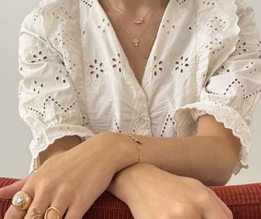 Ce collier en plaqué or est monté sur une chaîne en plaqué or 3 microns, ce qui garantit donc la qualité de ce bijou, qui conserve son éclat et sa couleur au fil des années.