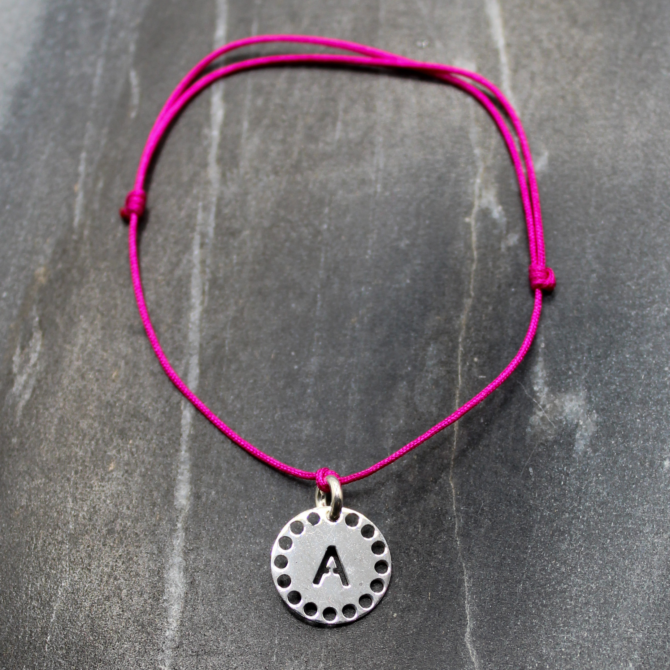 Bracelet avec médaillon en argent massif et lettre au choix.