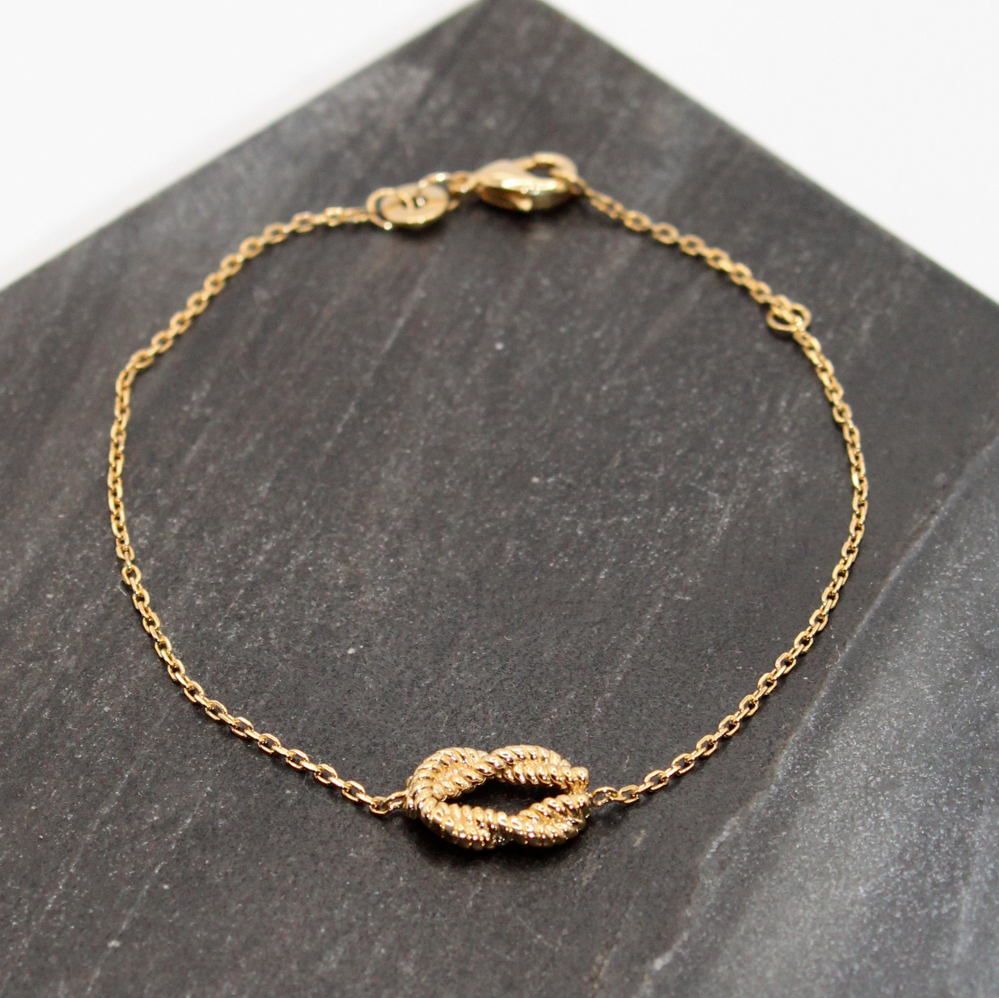 Ce bracelet en plaqué or est monté sur une chaîne en plaqué or 3 microns de 18 cm, qui résiste à l’eau et conserve sa couleur / éclat au fil des années.