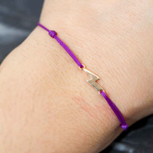 Joli petit éclair en plaqué or, monté sur un cordon fin du coloris de votre choix