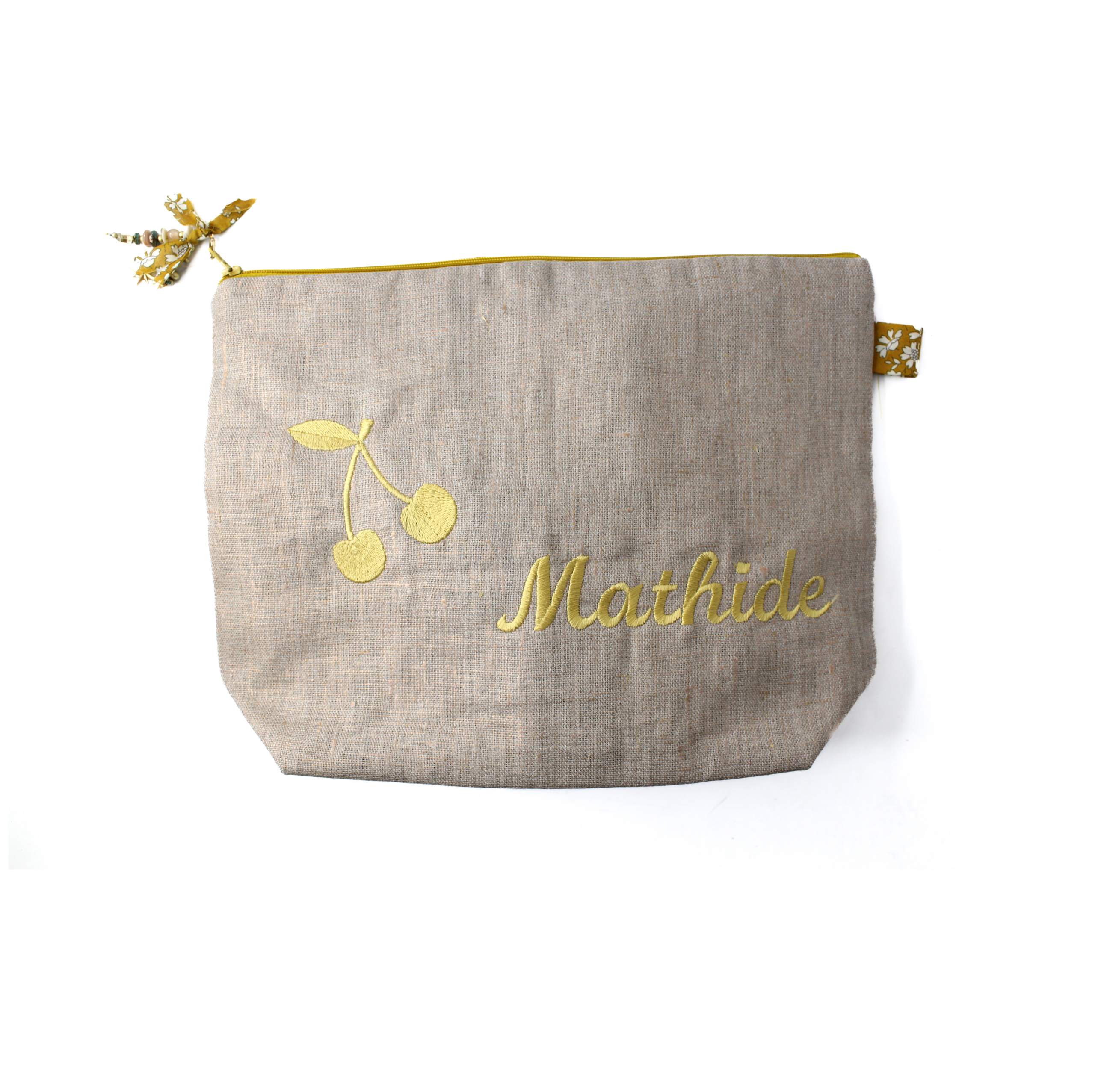 Lin naturel, broderie jaune et liberty moutarde au dos