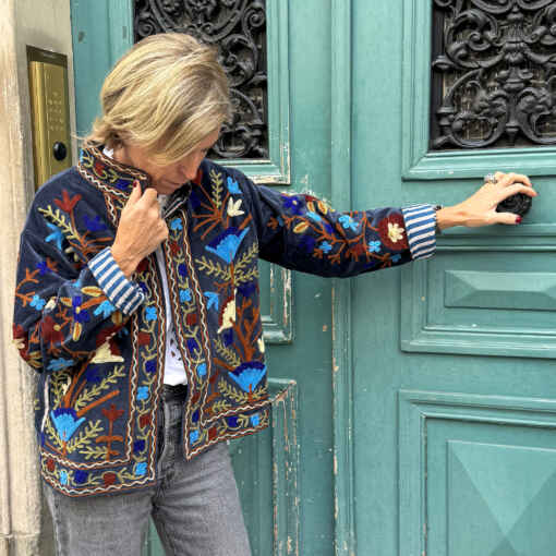 Veste brodée en velours bleu nuit