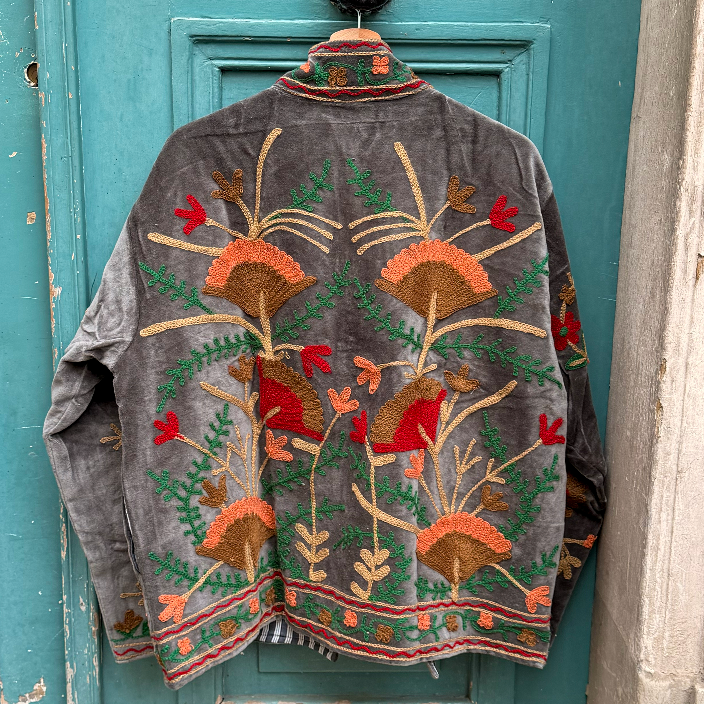 Veste brodée en velours grise 2
