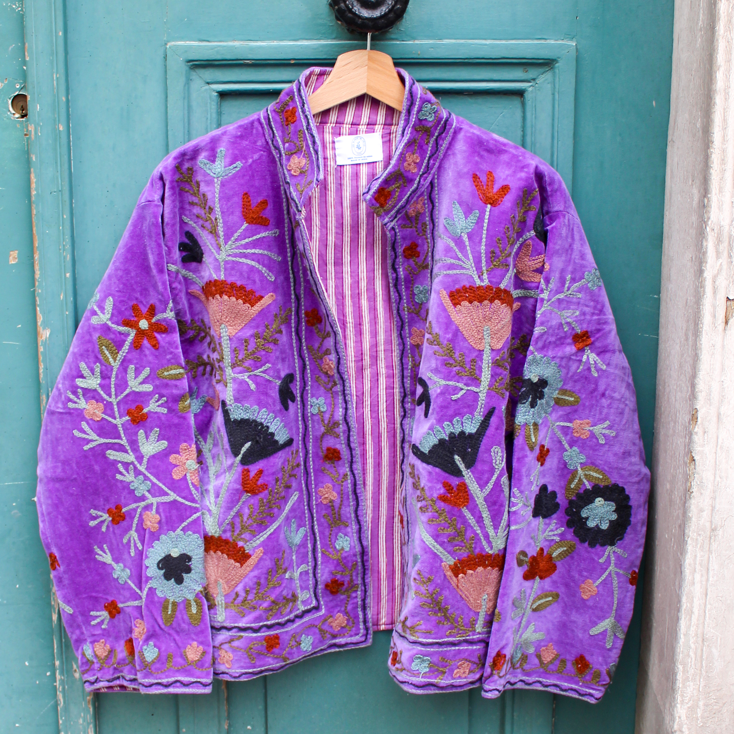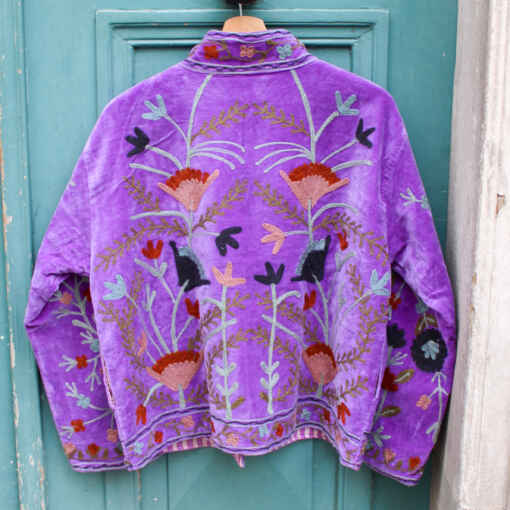 Veste brodée en velours violette
