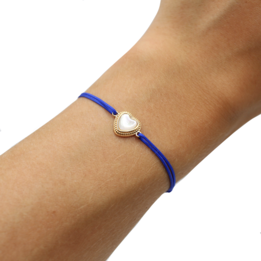 Joli petit coeur en plaqué or et nacre monté sur un cordon fin du coloris de votre choix